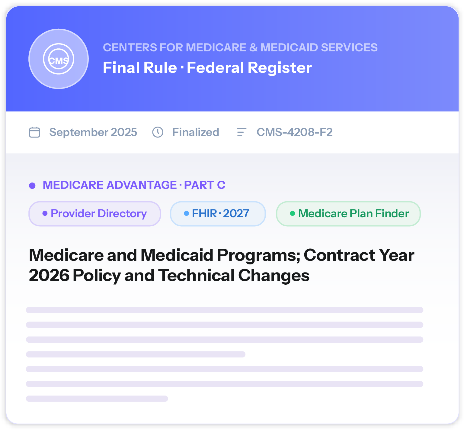 A rule finalized by CMS last September and detailed in a technical implementation guide published this past February represents a meaningful shift in that dynamic. By requiring every Medicare Advantage (MA) plan to submit standardized provider directory data for public display on Medicare Plan Finder, CMS is doing something it hasn't done effectively before: making the accuracy of MA provider directories visible, measurable, and directly consequential for plans.